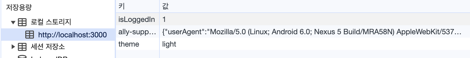 로컬스토리지에 가면 키와 값이 저장되어 있는것을 확인할 수 있다.