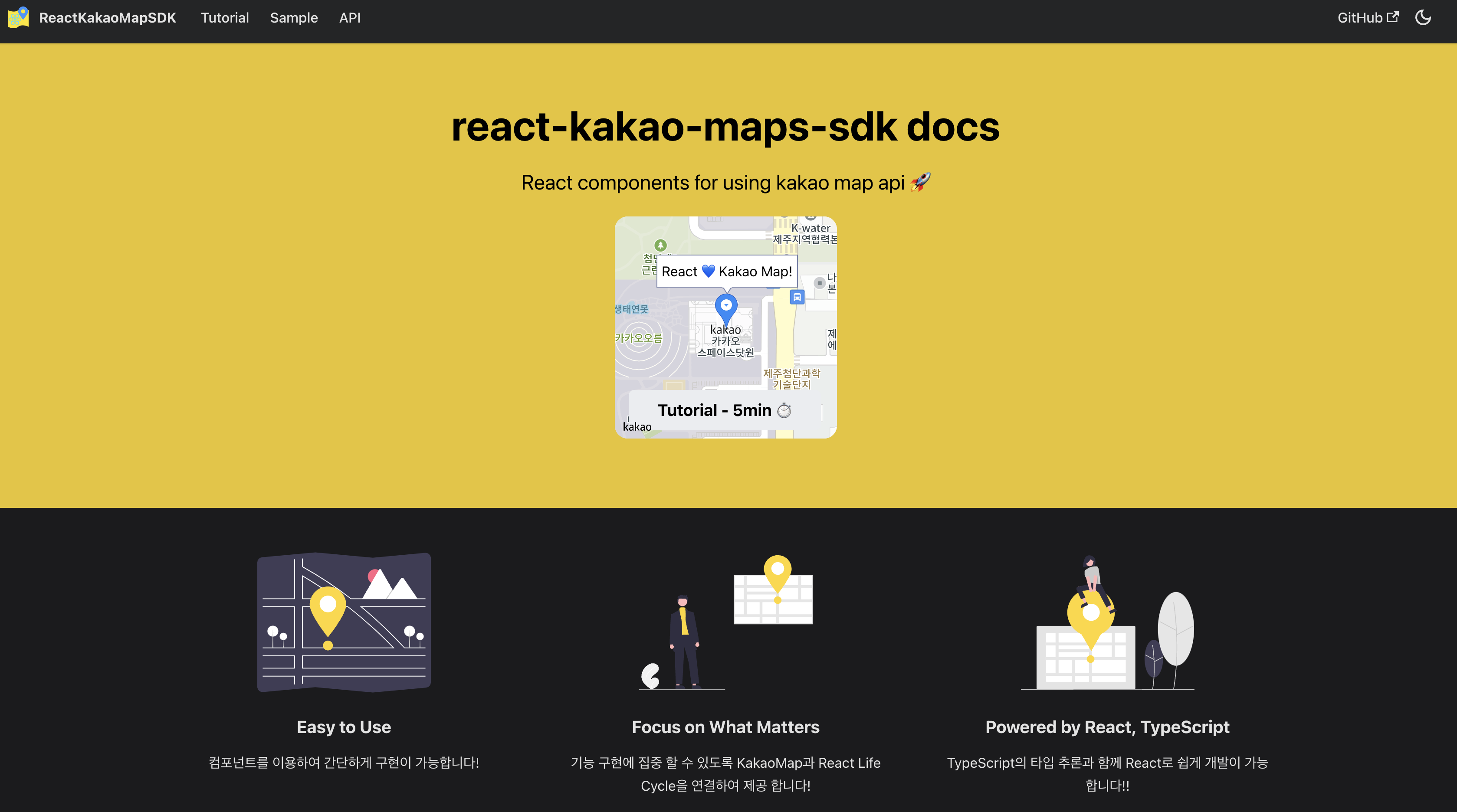 이걸 어떻게 리액트로 바꿔야하나 블로그를 많이 찾아보던 중 카카오맵 예제랑 거의 비슷하고 좀 더 리액트스럽게 바꿔놓은 라이브러리가 있었다!
