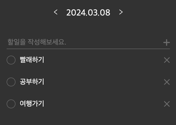 데이터는 localstorage로 저장했고, 배열의 상태가 변화할때마다 localstorage의 상태로 업데이트 되도록 useState를 해 놓은 상태이다.