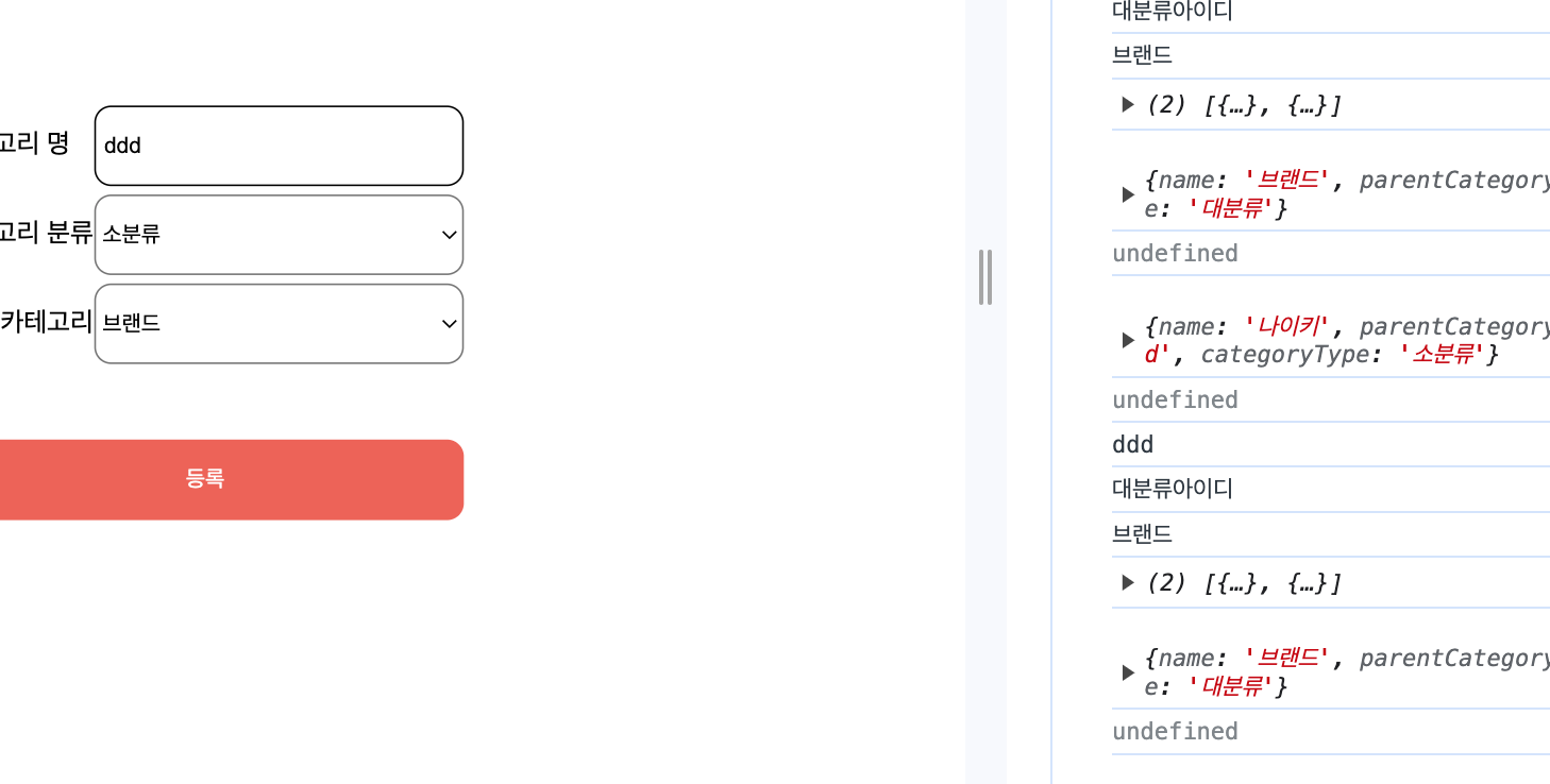 - 대분류 선택시: 대분류 아이디가 나와야 하나 → 대분류 이름이 나오는 이슈 발생